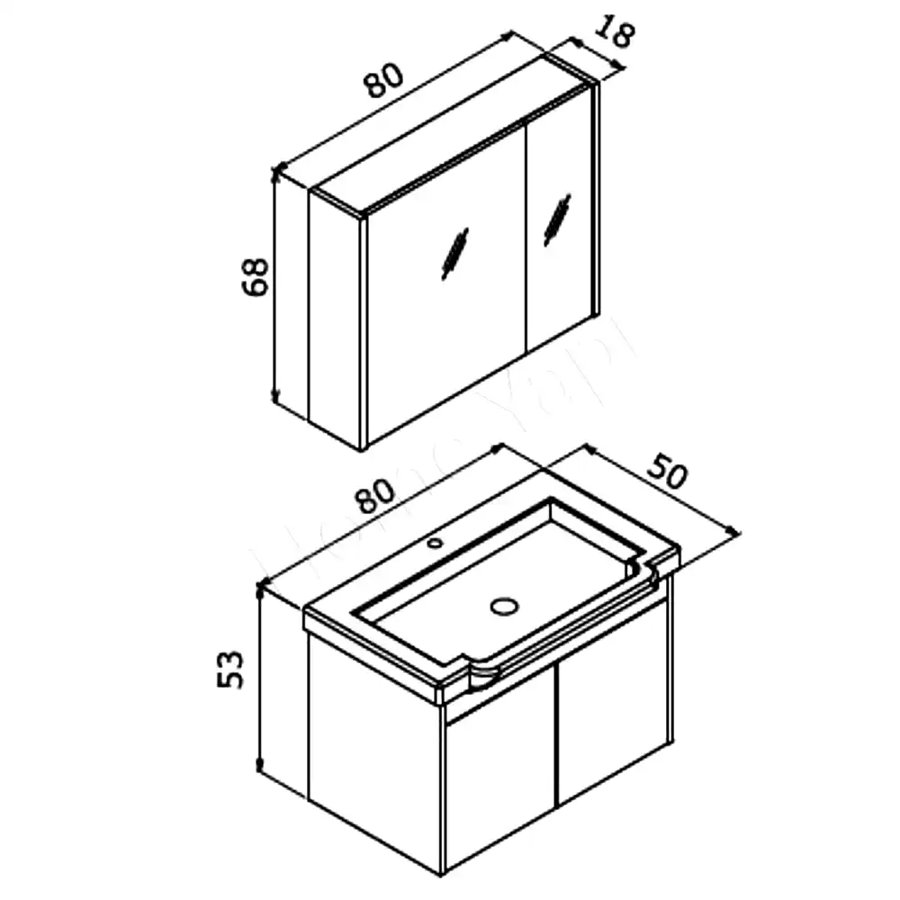 Banyo Dolabı 80 cm Alvit Full Mdf Lavabo Dahil