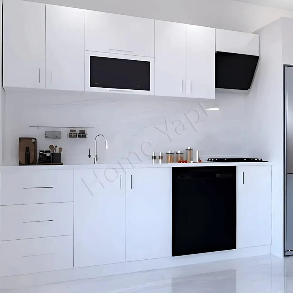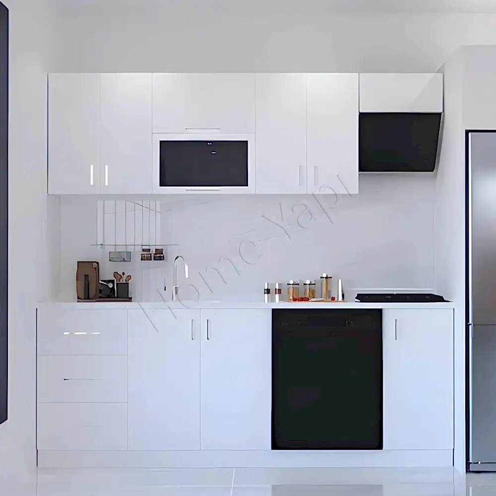 Mutfak Dolabı 250 cm Full Mdf Beyaz Tezgah Dahil